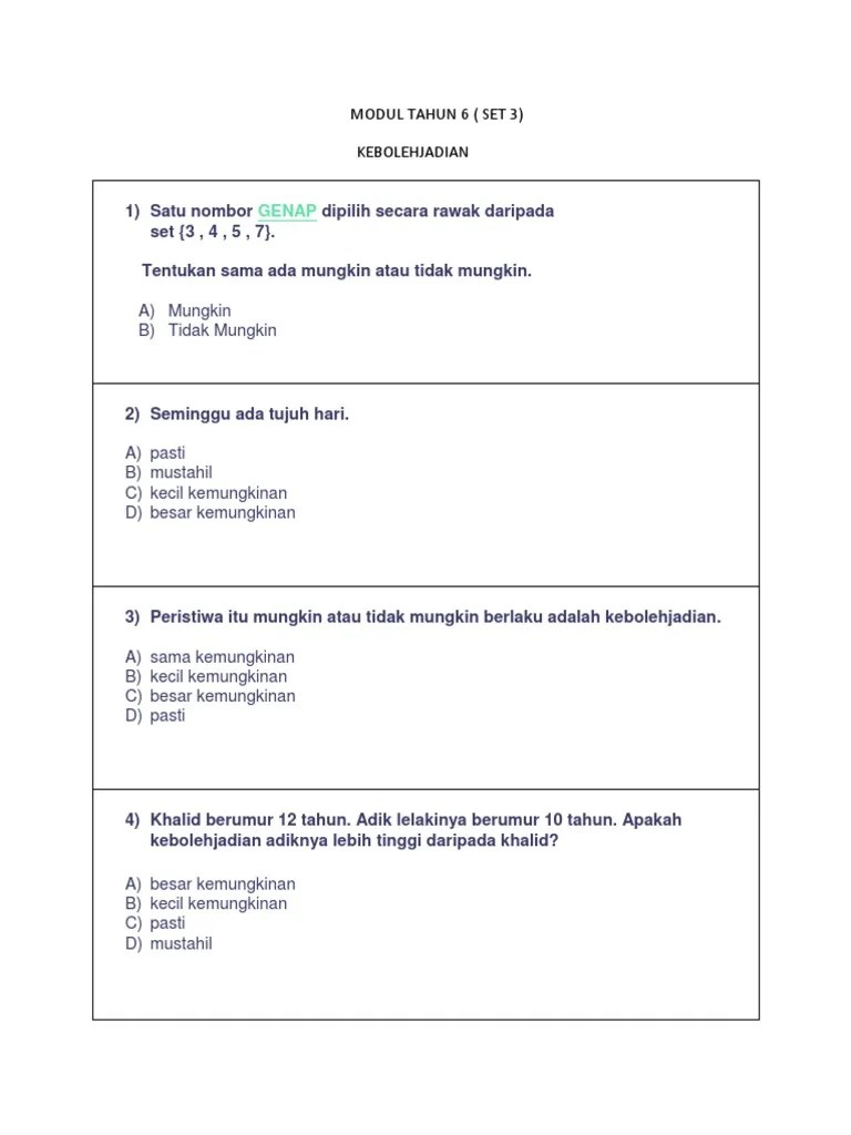 Kebolehjadian Matematik Tahun 6 : Kebolehjadian Pdf